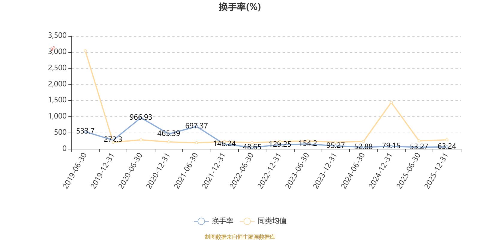 截至2025年12月31日,基金最近一年换手率约114.17%,持续4年低于同类均值。