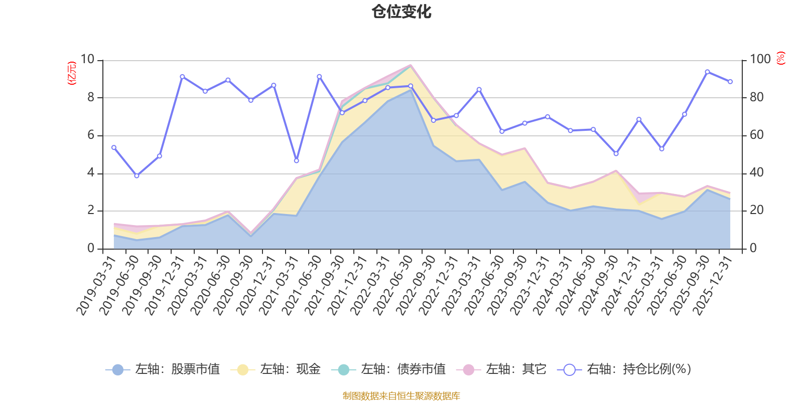 据定期报告数据统计,近三年平均股票仓位为69.61%,同类平均为72.57%。2025年三季度末基金达到93.81%的最高仓位,2019年上半年末最低,为38.74%。