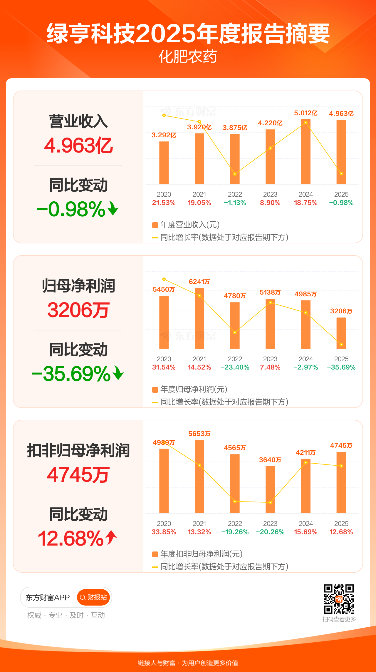 图解财报:绿亨科技全年归母净利润3206.06万元,同比减少35.69%