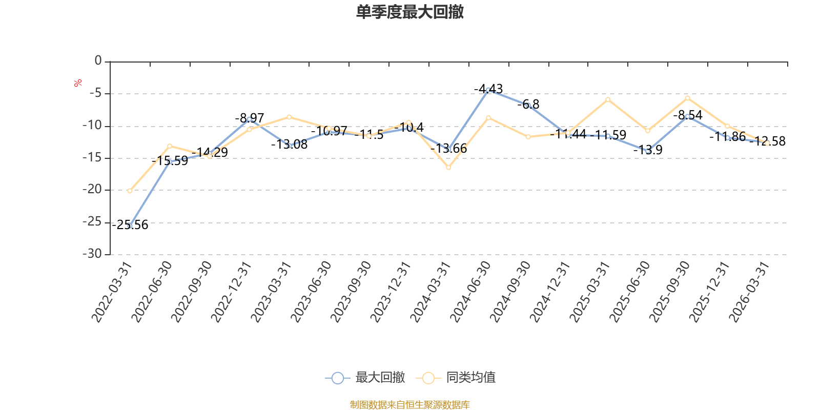 截至4月9日,基金近三年最大回撤为34.04%,同类可比基金排名311/549。单季度最大回撤出现在2022年一季度,为25.56%。