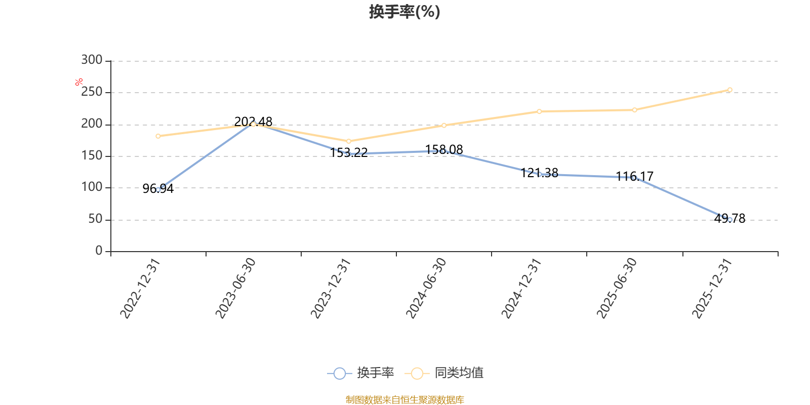 截至2025年12月31日,基金最近一年换手率约156.64%,持续2年低于同类均值。