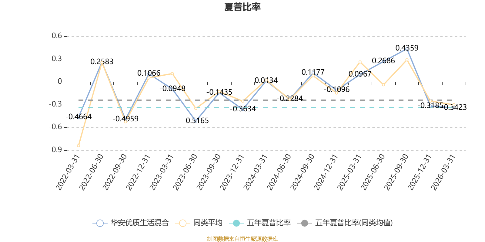截至3月31日,基金近三年夏普比率为-0.1427,位于同类可比基金43/75。