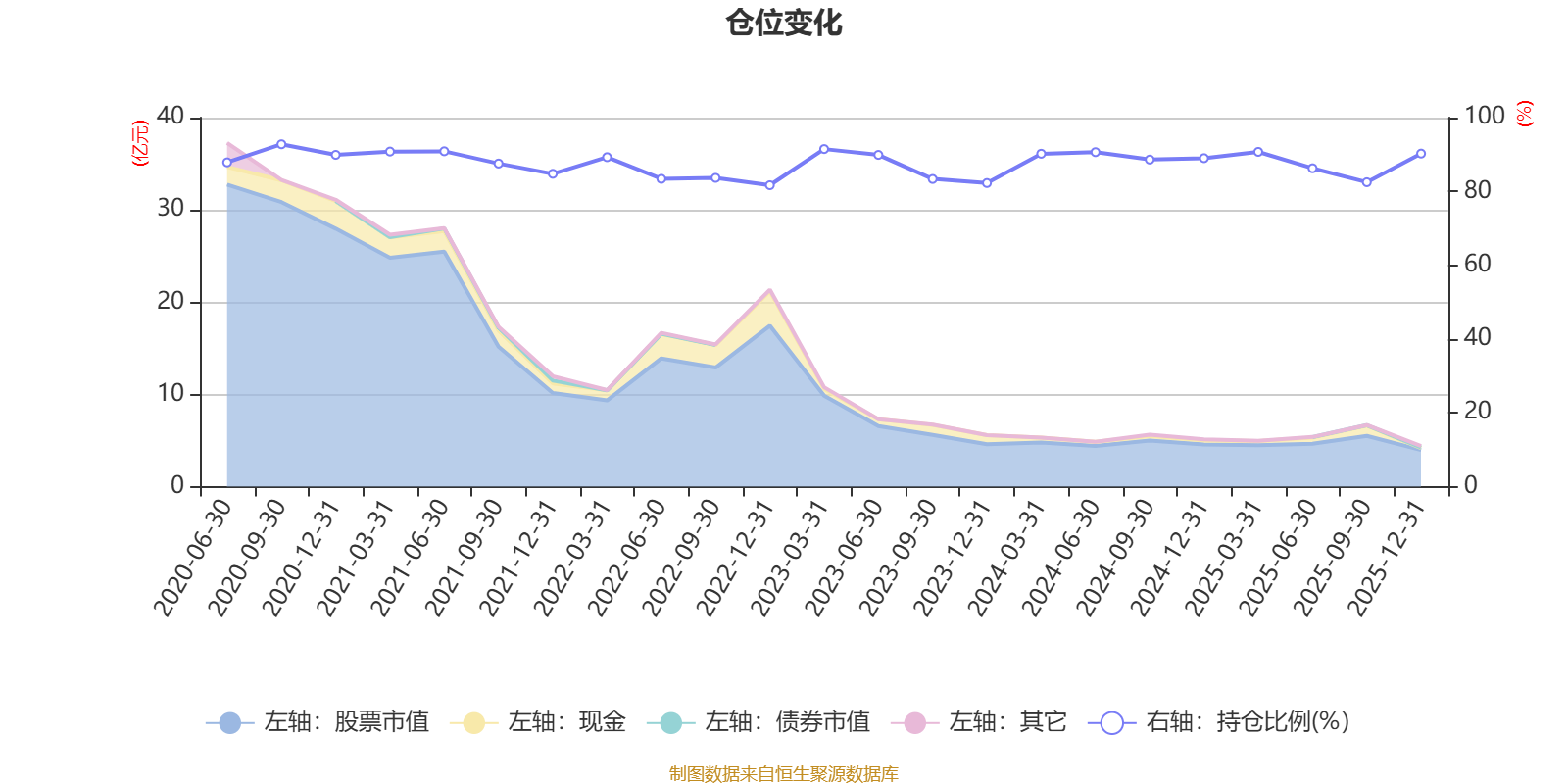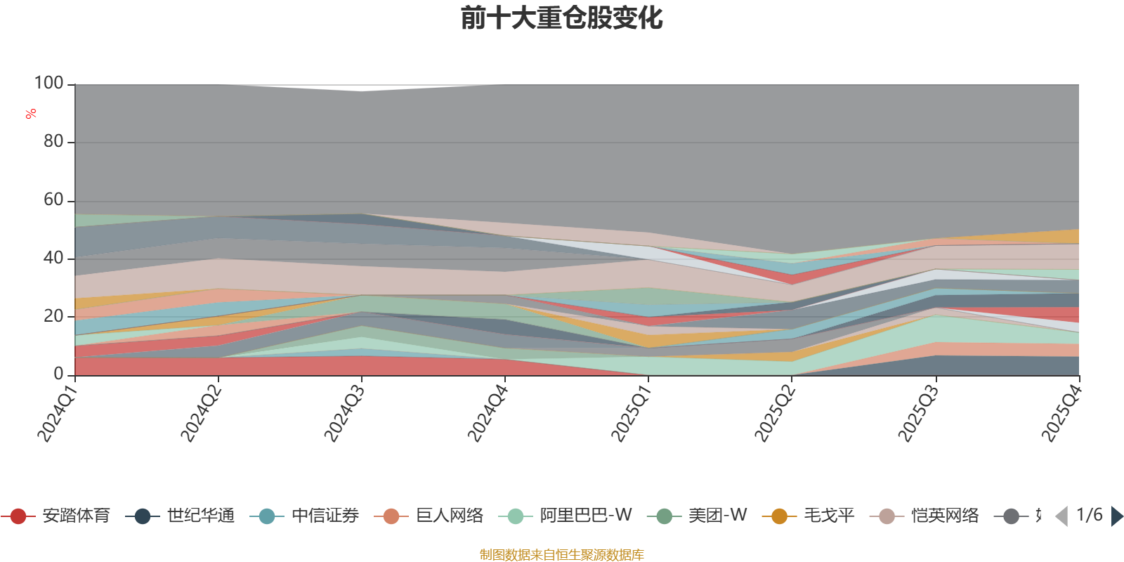 截至2025年末,基金十大重仓股分别是腾讯控股、世纪华通、泸州老窖、中国人寿、寒武纪、若羽臣、巨人网络、阿里巴巴-W、古井贡酒、中国太保。