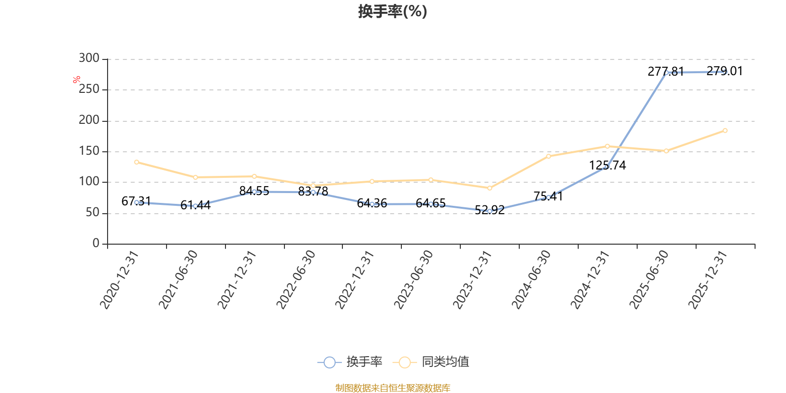 截至2025年12月31日,基金最近一年换手率约556.83%,持续1年高于同类均值。