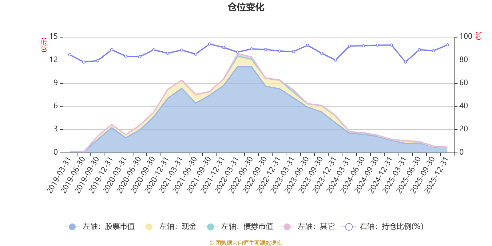 据定期报告数据统计,近三年平均股票仓位为88.71%,同类平均为87.05%。2021年三季度末基金达到93.89%的最高仓位,2025年一季度末最低,为78.26%。