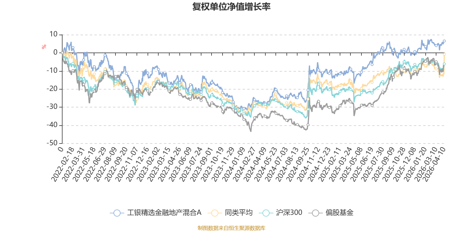 截至4月10日,工银精选金融地产混合A近三个月复权单位净值增长率为2.19%,位于同类可比基金2/16;近半年复权单位净值增长率为7.03%,位于同类可比基金3/16;近一年复权单位净值增长率为24.30%,位于同类可比基金1/16;近三年复权单位净值增长率为25.94%,位于同类可比基金4/12。