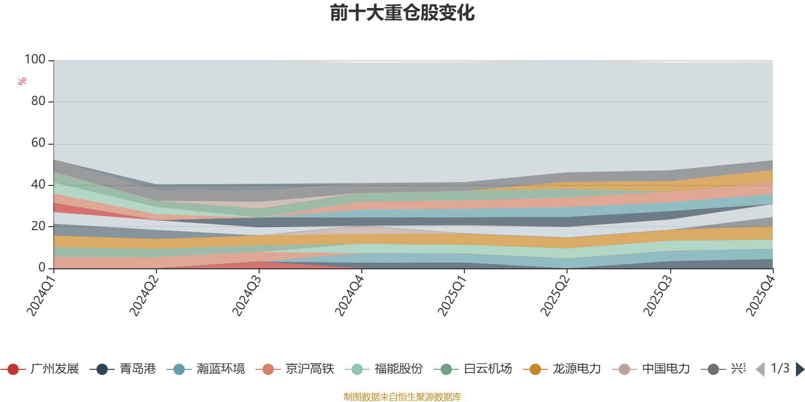 截至2025年末,基金十大重仓股分别是龙源电力、华润燃气、新奥股份、华润电力、瀚蓝环境、中闽能源、华能国际电力股份、福能股份、青岛港、兴蓉环境。