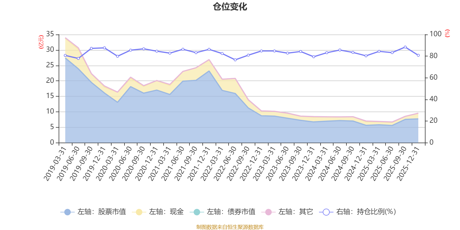 据定期报告数据统计,近三年平均股票仓位为83.4%,同类平均为86.12%。2025年三季度末基金达到88.39%的最高仓位,2022年上半年末最低,为76.59%。