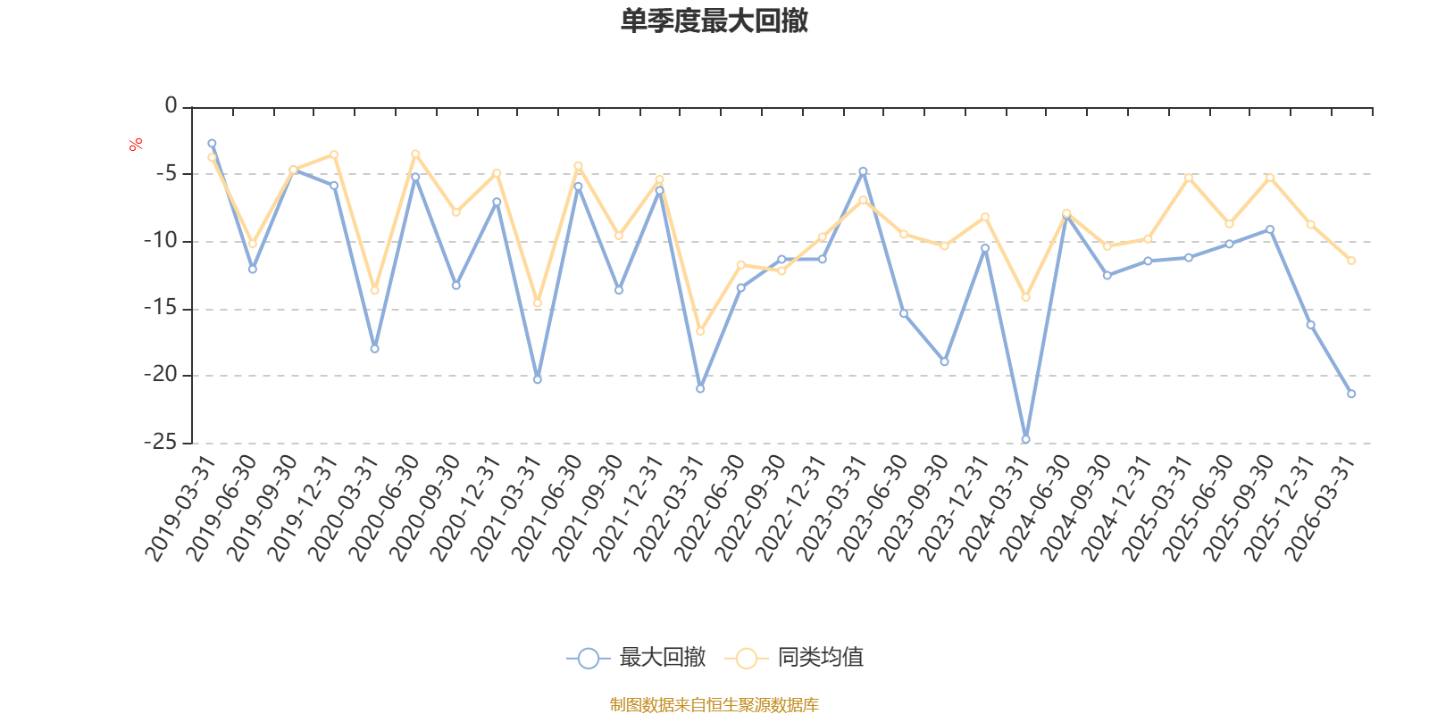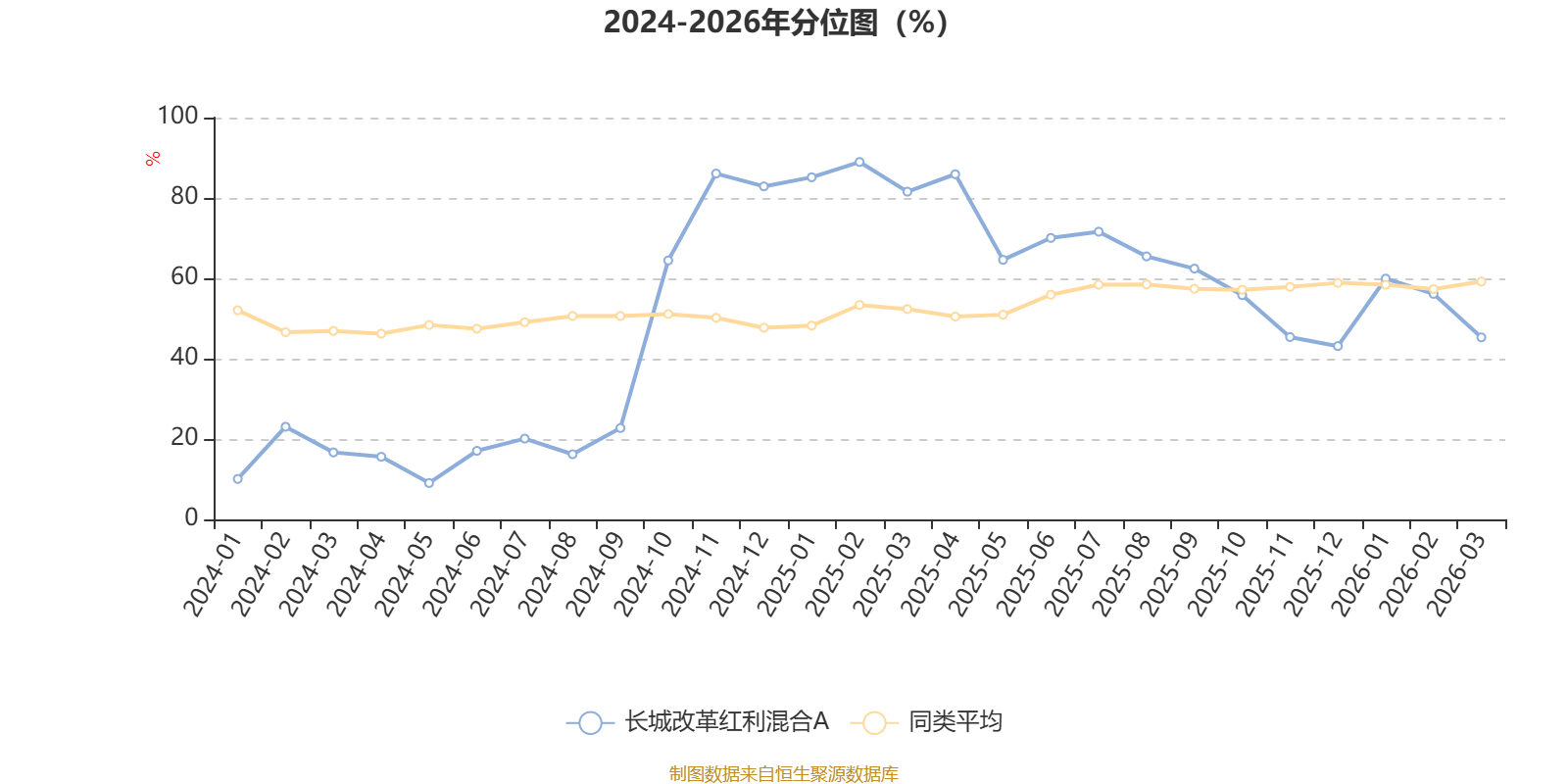 通过所选区间该基金净值增长率分位图,可以观察该基金与同类基金业绩比较情况。图为坐标原点到区间内某时点的净值增长率在同类基金中的分位数。