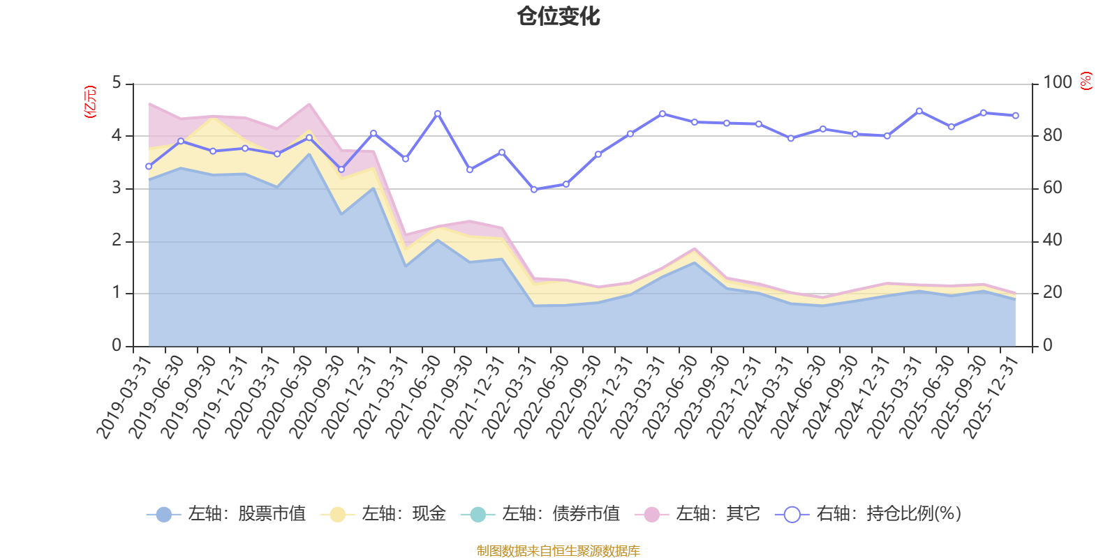 据定期报告数据统计,近三年平均股票仓位为84.71%,同类平均为72.57%。2025年一季度末基金达到89.59%的最高仓位,2022年一季度末最低,为59.7%。
