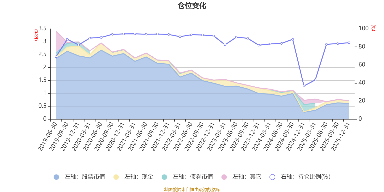 据定期报告数据统计,近三年平均股票仓位为77.58%,同类平均为72.57%。2021年一季度末基金达到94.39%的最高仓位,2024年末最低,为36.76%。