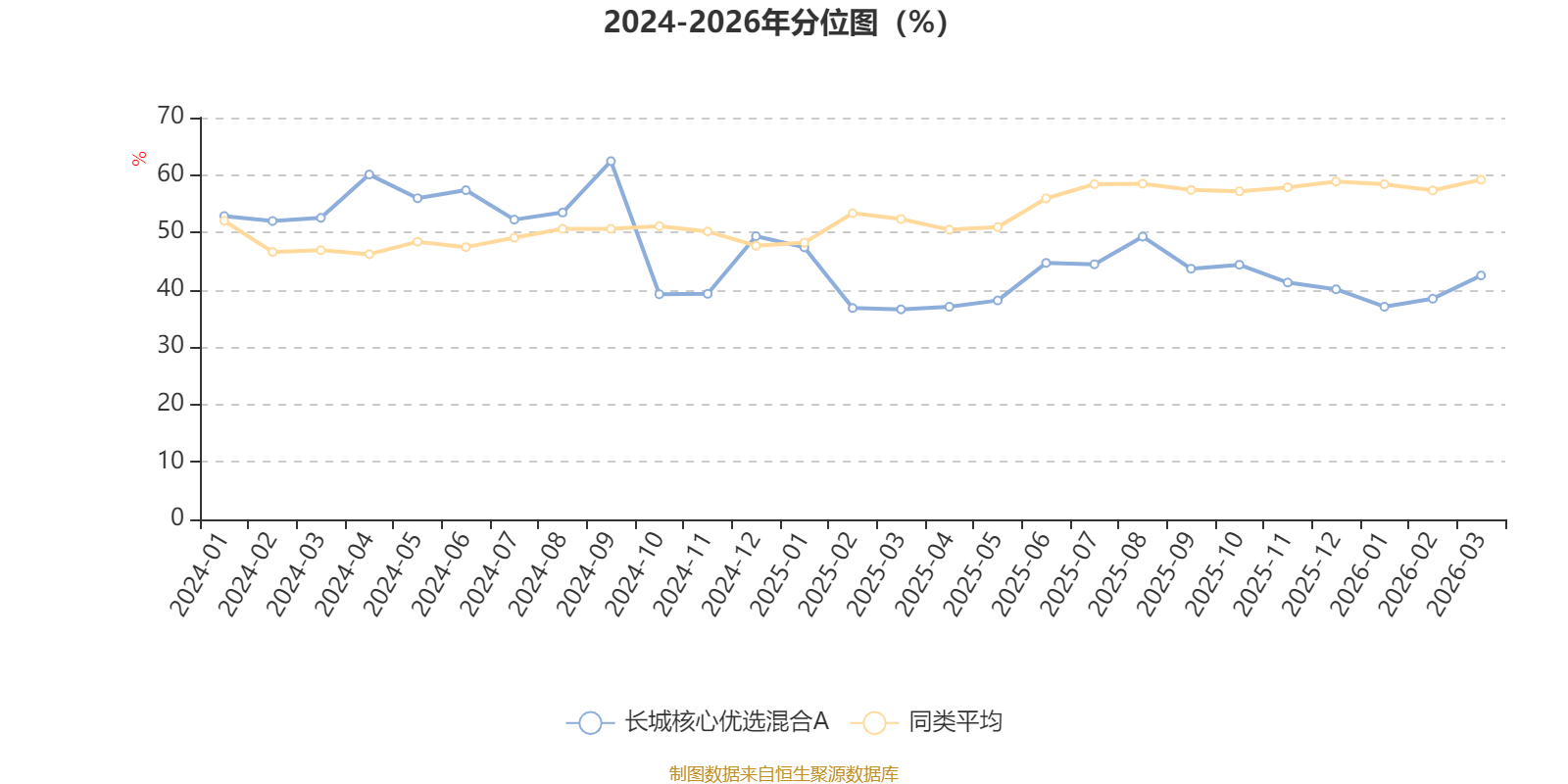 通过所选区间该基金净值增长率分位图,可以观察该基金与同类基金业绩比较情况。图为坐标原点到区间内某时点的净值增长率在同类基金中的分位数。