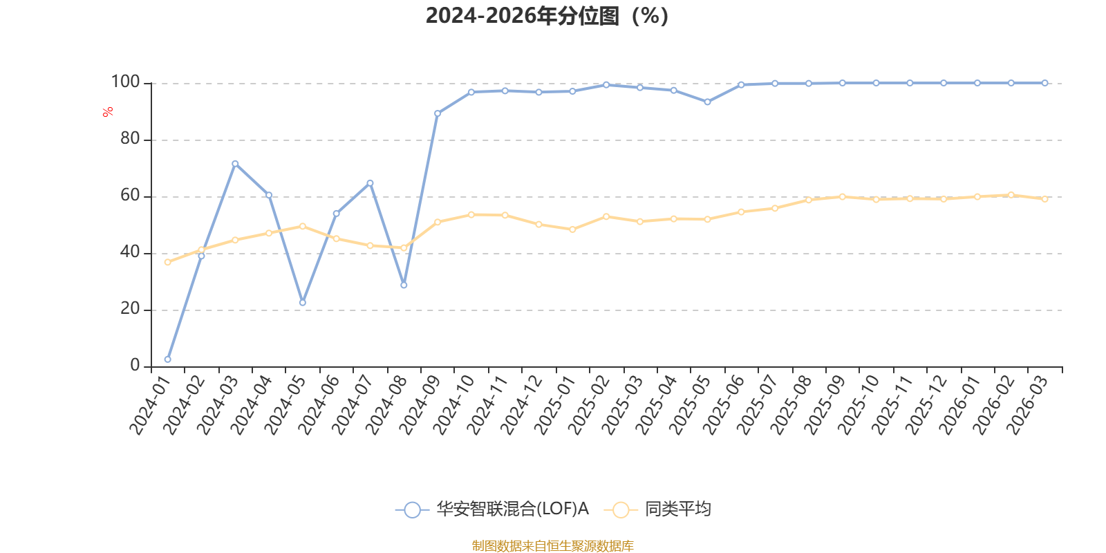 通过所选区间该基金净值增长率分位图,可以观察该基金与同类基金业绩比较情况。图为坐标原点到区间内某时点的净值增长率在同类基金中的分位数。