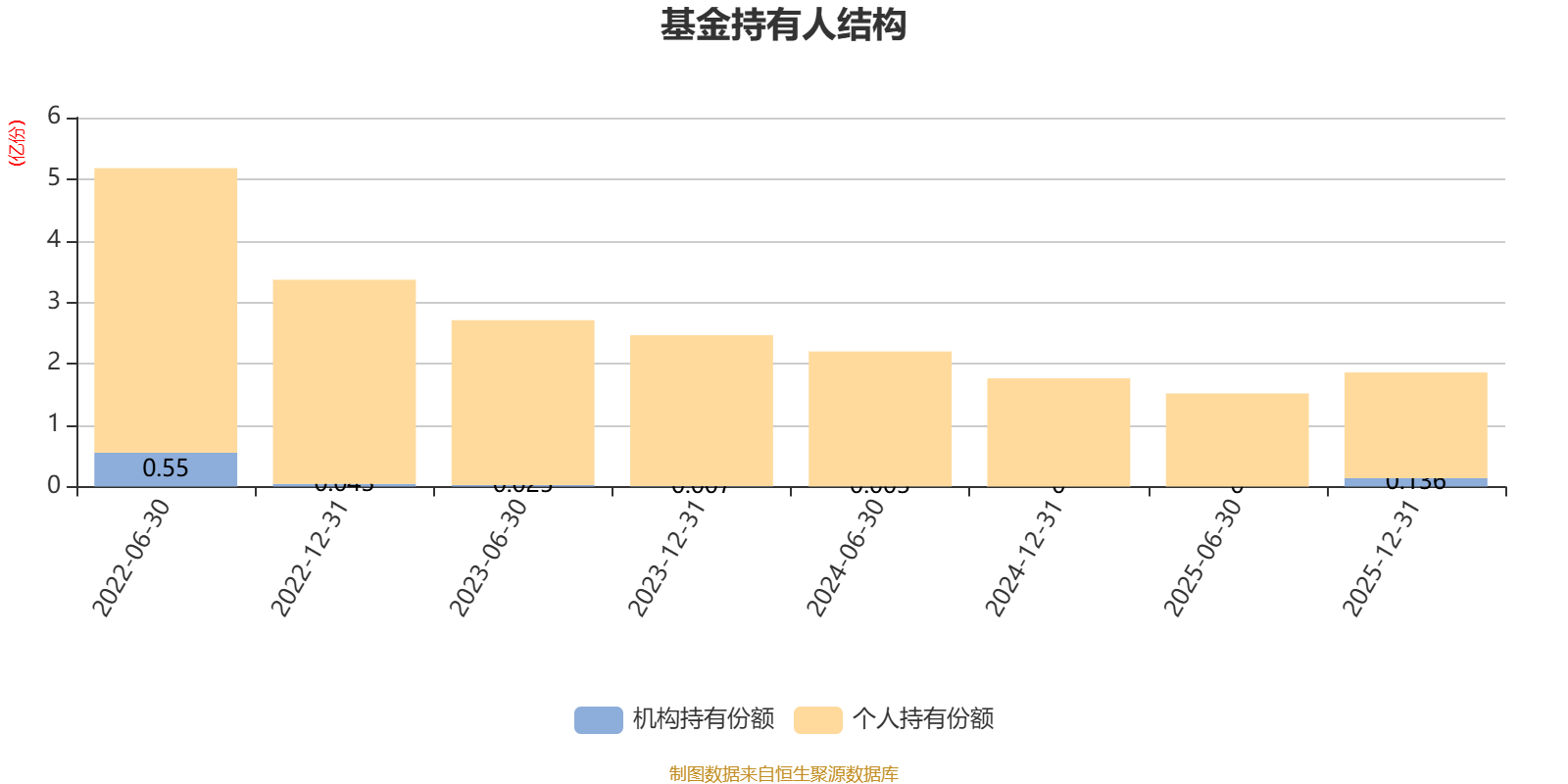 截至2025年12月31日,基金持有人共计2.62万户,合计持有1.86亿份。其中管理人员工持有111.83万份,占比0.60%,机构持有份额占比7.33%,个人投资者占比92.67%。
