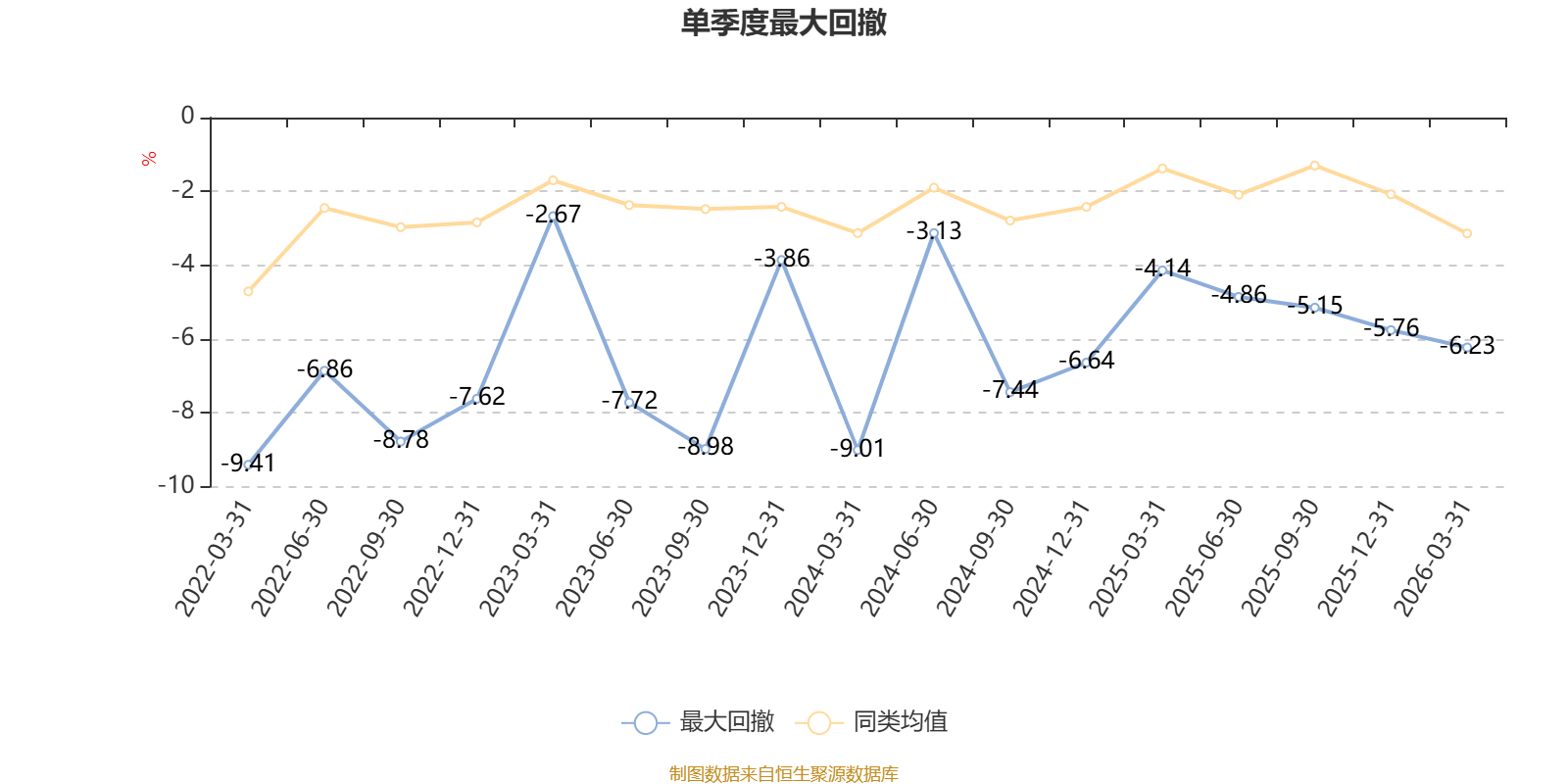 截至4月9日,基金近三年最大回撤为17.64%,同类可比基金排名513/534。单季度最大回撤出现在2022年一季度,为9.41%。