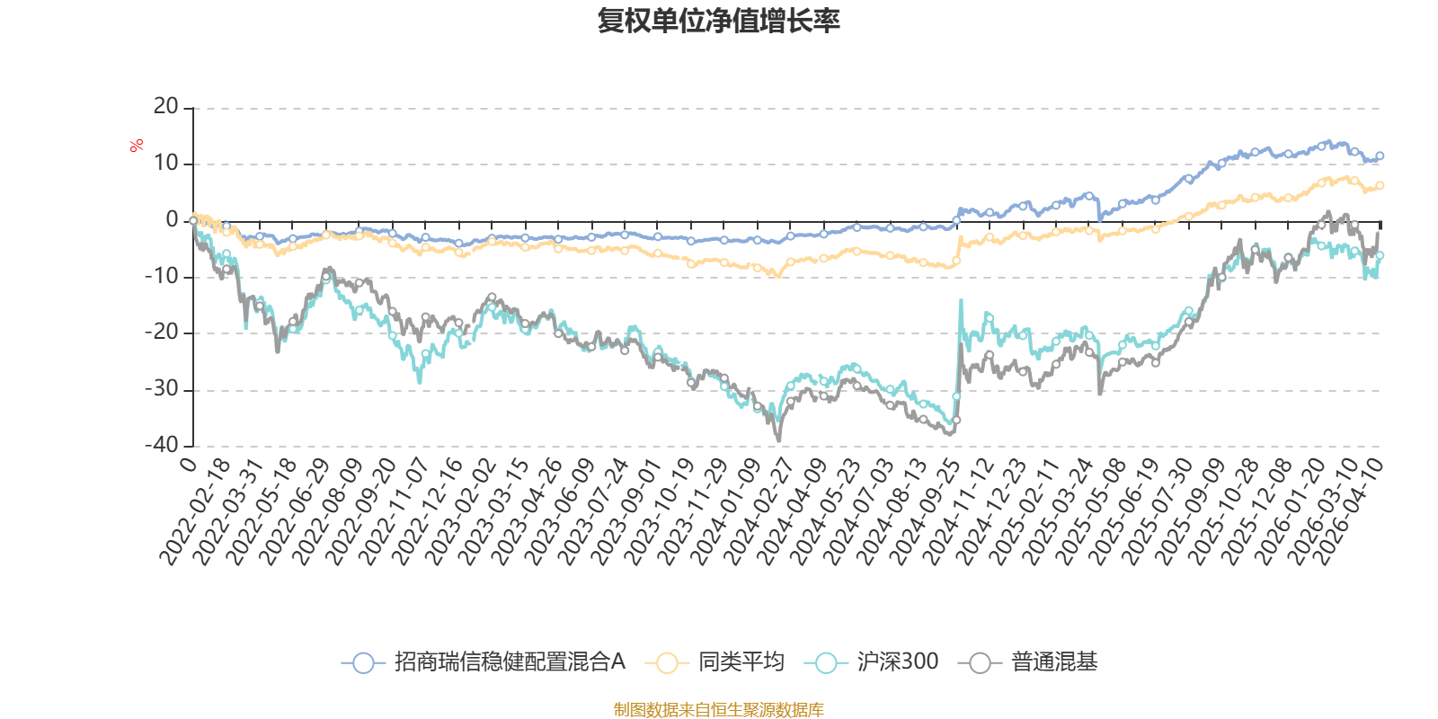 截至4月10日,招商瑞信稳健配置混合A近三个月复权单位净值增长率为-1.07%,位于同类可比基金541/629;近半年复权单位净值增长率为-0.56%,位于同类可比基金550/629;近一年复权单位净值增长率为10.19%,位于同类可比基金167/629;近三年复权单位净值增长率为14.83%,位于同类可比基金171/581。