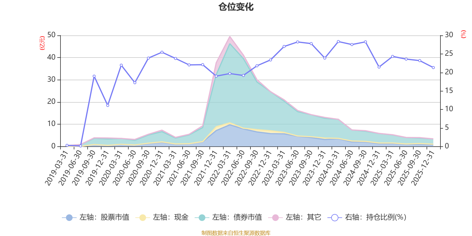 据定期报告数据统计,近三年平均股票仓位为25.41%,同类平均为72.57%。2024年一季度末基金达到28.34%的最高仓位,2019年上半年末最低,为0.14%。