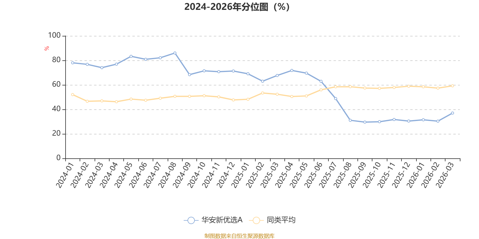 通过所选区间该基金净值增长率分位图,可以观察该基金与同类基金业绩比较情况。图为坐标原点到区间内某时点的净值增长率在同类基金中的分位数。