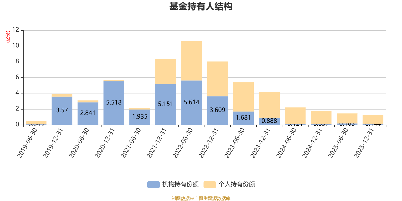 截至2025年12月31日,基金持有人共计1.18万户,合计持有1.22亿份。其中管理人员工持有59.99万份,占比0.49%,机构持有份额占比11.80%,个人投资者占比88.20%。