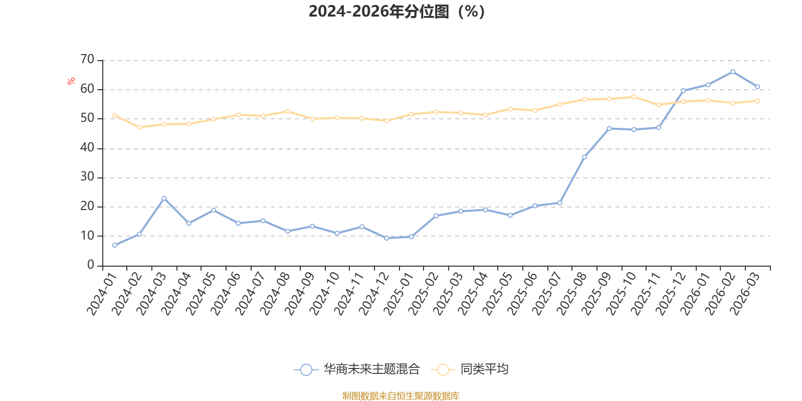 通过所选区间该基金净值增长率分位图,可以观察该基金与同类基金业绩比较情况。图为坐标原点到区间内某时点的净值增长率在同类基金中的分位数。