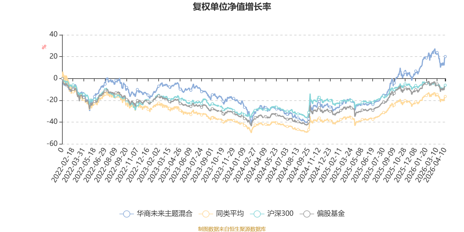 截至4月10日,华商未来主题混合近三个月复权单位净值增长率为1.23%,位于同类可比基金265/621;近半年复权单位净值增长率为12.56%,位于同类可比基金113/621;近一年复权单位净值增长率为61.70%,位于同类可比基金111/618;近三年复权单位净值增长率为27.00%,位于同类可比基金211/559。