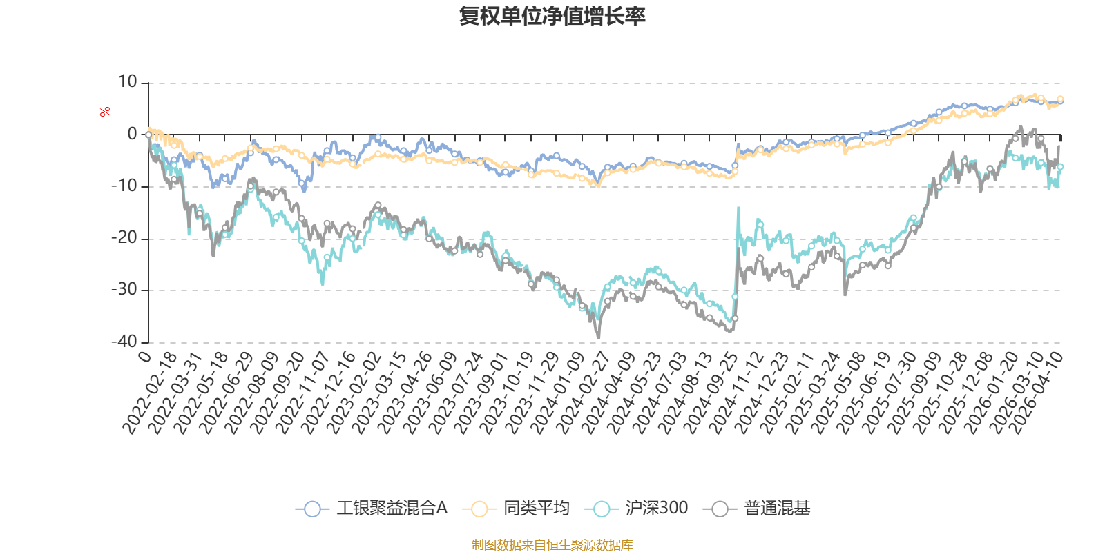 截至4月10日,工银聚益混合A近三个月复权单位净值增长率为0.71%,位于同类可比基金225/629;近半年复权单位净值增长率为0.85%,位于同类可比基金415/629;近一年复权单位净值增长率为7.66%,位于同类可比基金277/629;近三年复权单位净值增长率为8.10%,位于同类可比基金386/581。