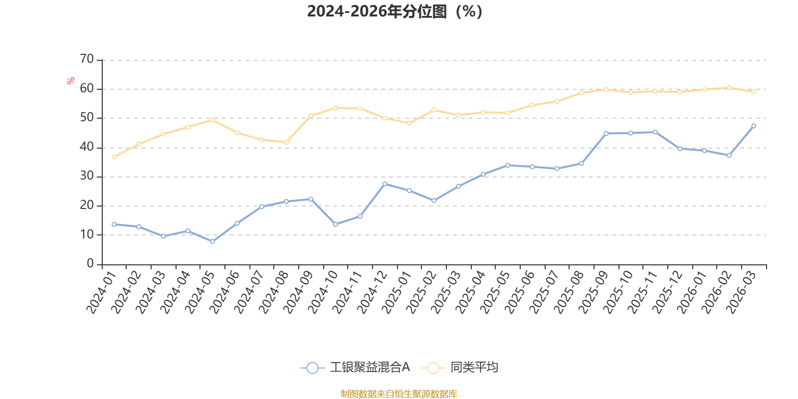 通过所选区间该基金净值增长率分位图,可以观察该基金与同类基金业绩比较情况。图为坐标原点到区间内某时点的净值增长率在同类基金中的分位数。
