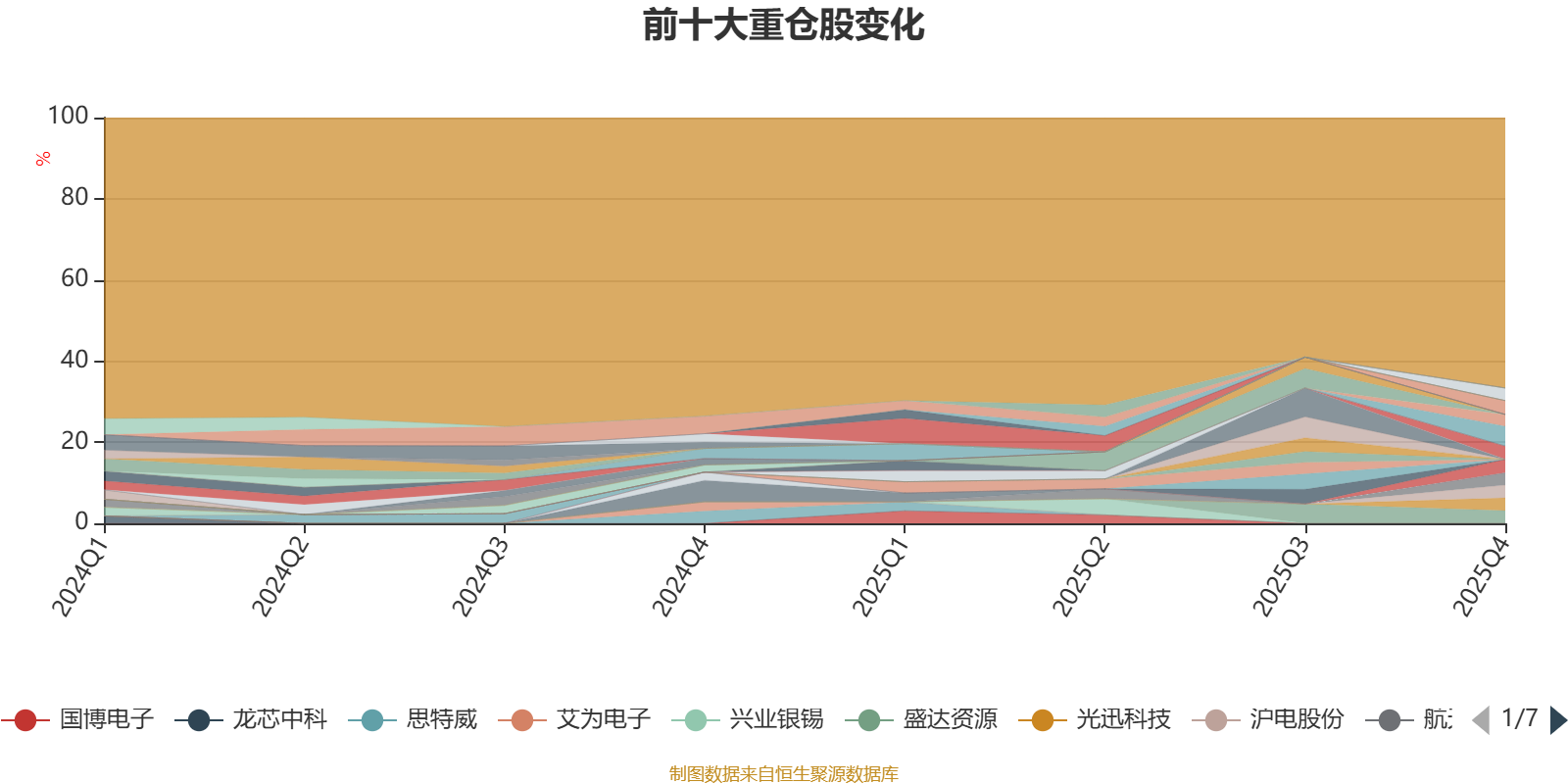 截至2025年末,基金十大重仓股分别是浪潮信息、华润微、锐捷网络、中国平安、沪电股份、光迅科技、盛达资源、金风科技、航天电子、华泰证券。