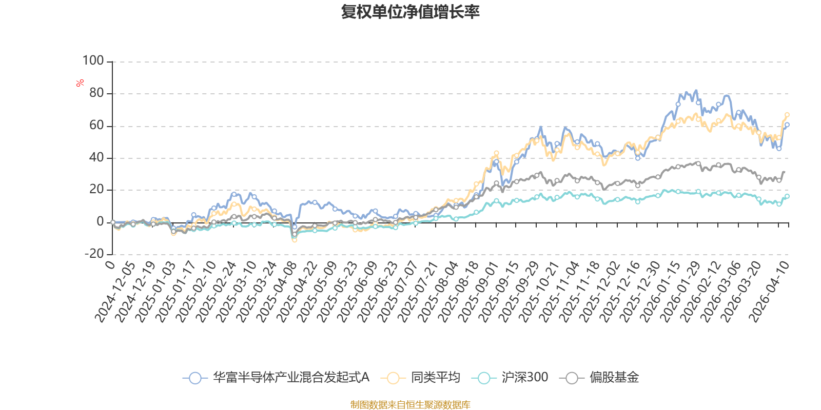 截至4月10日,华富半导体产业混合发起式A近三个月复权单位净值增长率为-4.50%,位于同类可比基金182/229;近半年复权单位净值增长率为5.33%,位于同类可比基金133/229;近一年复权单位净值增长率为56.07%,位于同类可比基金144/229。