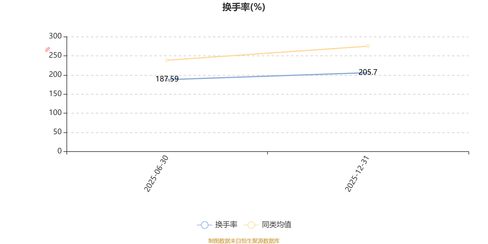 截至2025年12月31日,基金最近一年换手率约373.66%,持续低于同类均值。