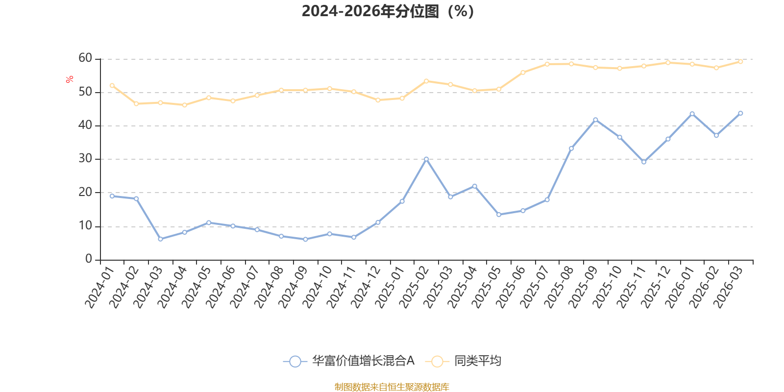 通过所选区间该基金净值增长率分位图,可以观察该基金与同类基金业绩比较情况。图为坐标原点到区间内某时点的净值增长率在同类基金中的分位数。