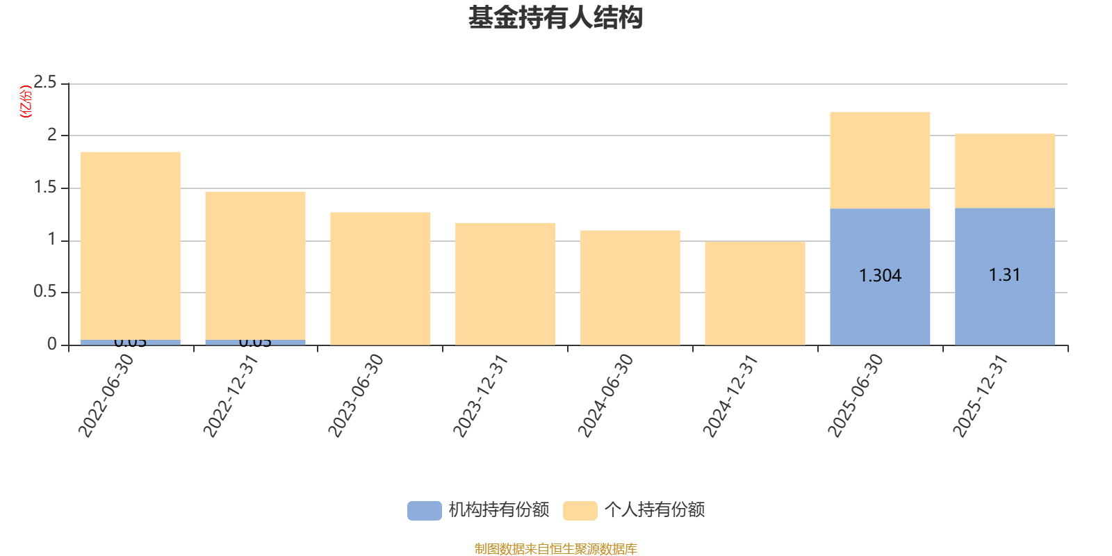 截至2025年12月31日,基金持有人共计1281户,合计持有2.02亿份。其中管理人员工持有10.1万份,占比0.05%,机构持有份额占比64.86%,个人投资者占比35.14%。