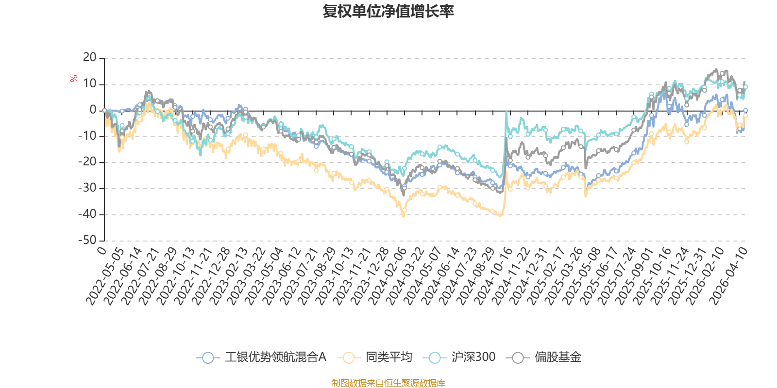 截至4月10日,工银优势领航混合A近三个月复权单位净值增长率为-3.62%,位于同类可比基金445/621;近半年复权单位净值增长率为-3.85%,位于同类可比基金506/621;近一年复权单位净值增长率为42.54%,位于同类可比基金256/618;近三年复权单位净值增长率为3.82%,位于同类可比基金396/559。