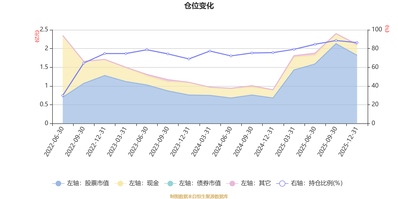 据定期报告数据统计,近三年平均股票仓位为78%,同类平均为85.83%。2025年三季度末基金达到88.61%的最高仓位,2022年上半年末最低,为29.92%。