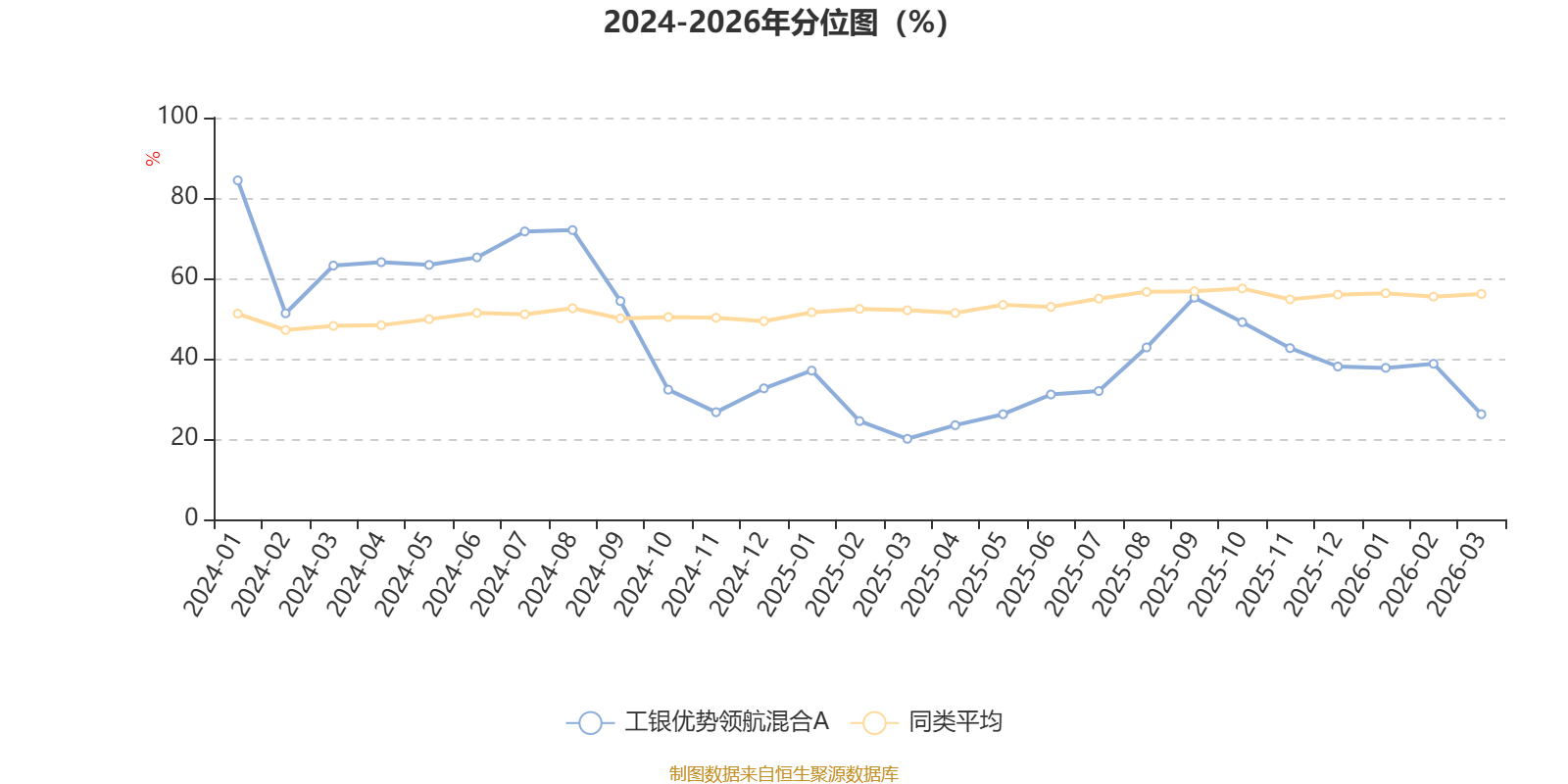 通过所选区间该基金净值增长率分位图,可以观察该基金与同类基金业绩比较情况。图为坐标原点到区间内某时点的净值增长率在同类基金中的分位数。
