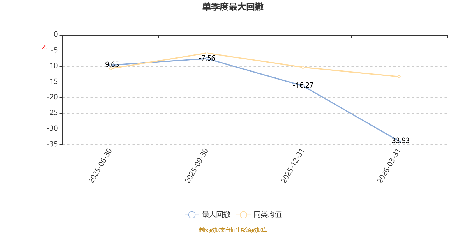 截至4月9日,基金成立以来最大回撤为34.86%。单季度最大回撤出现在2026年一季度,为33.93%。