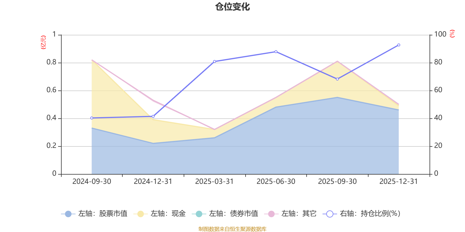 据定期报告数据统计,成立以来平均股票仓位为68.55%,同类平均为84.04%。2025年末基金达到92.71%的最高仓位,2024年三季度末最低,为40.24%。