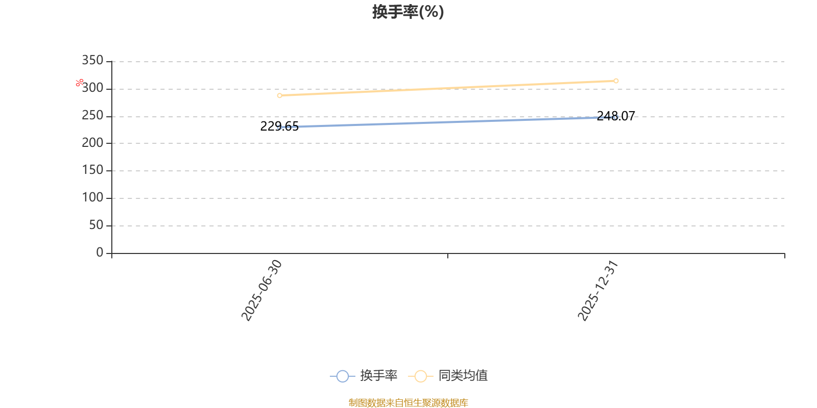 截至2025年12月31日,基金最近一年换手率约498.03%,持续低于同类均值。