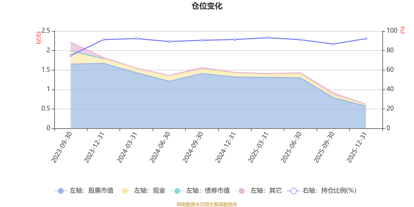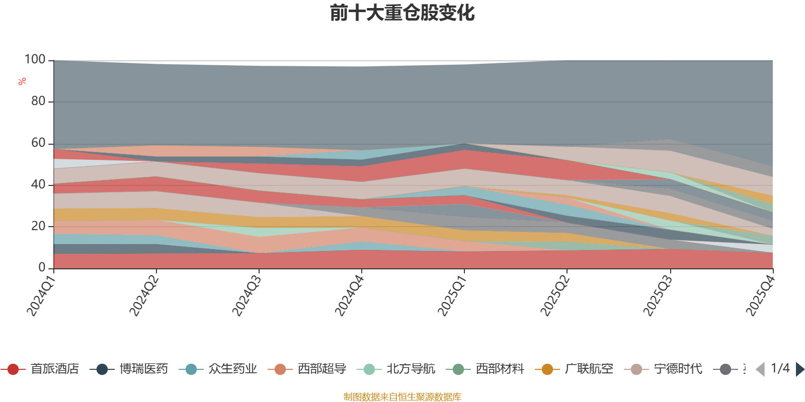 截至2025年末,基金十大重仓股分别是长源东谷、首旅酒店、中材科技、菲利华、禾望电气、微盟集团、中恒电气、格林美、比亚迪电子、锦江酒店。