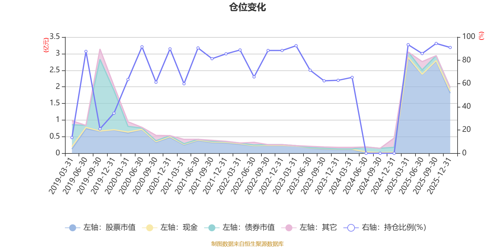 据定期报告数据统计,近三年平均股票仓位为59.94%,同类平均为72.57%。2025年三季度末基金达到94.49%的最高仓位,2019年一季度末最低,为13.53%。