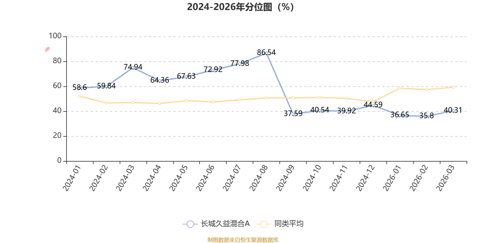 通过所选区间该基金净值增长率分位图,可以观察该基金与同类基金业绩比较情况。图为坐标原点到区间内某时点的净值增长率在同类基金中的分位数。