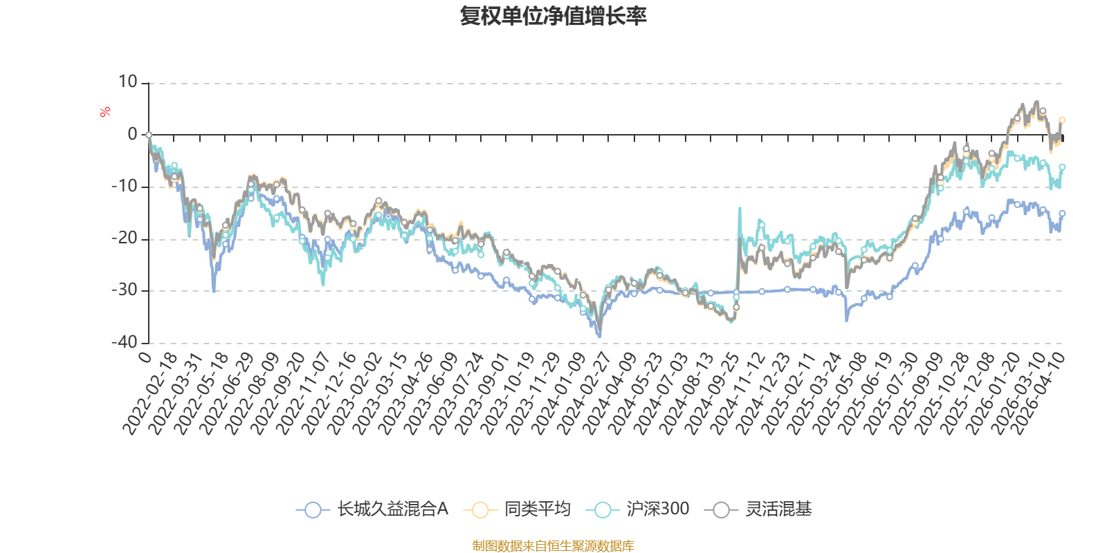 截至4月10日,长城久益混合A近三个月复权单位净值增长率为-2.54%,位于同类可比基金905/1287;近半年复权单位净值增长率为1.55%,位于同类可比基金836/1286;近一年复权单位净值增长率为27.66%,位于同类可比基金693/1286;近三年复权单位净值增长率为2.68%,位于同类可比基金948/1286。