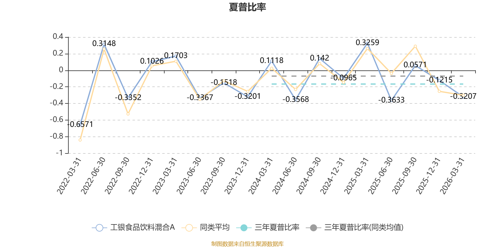 截至3月31日,基金近三年夏普比率为-0.1665,位于同类可比基金47/75。