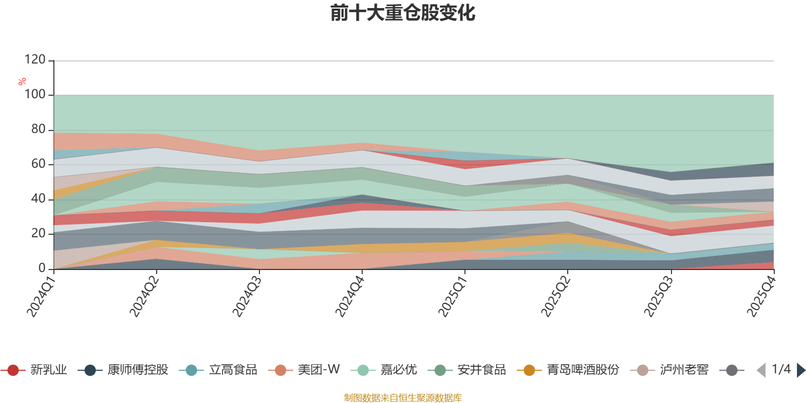 该基金持股集中度较高。截至2025年末,基金十大重仓股分别是东鹏饮料、安琪酵母、燕京啤酒、贵州茅台、康师傅控股、伊利股份、山西汾酒、新乳业、立高食品、盐津铺子。