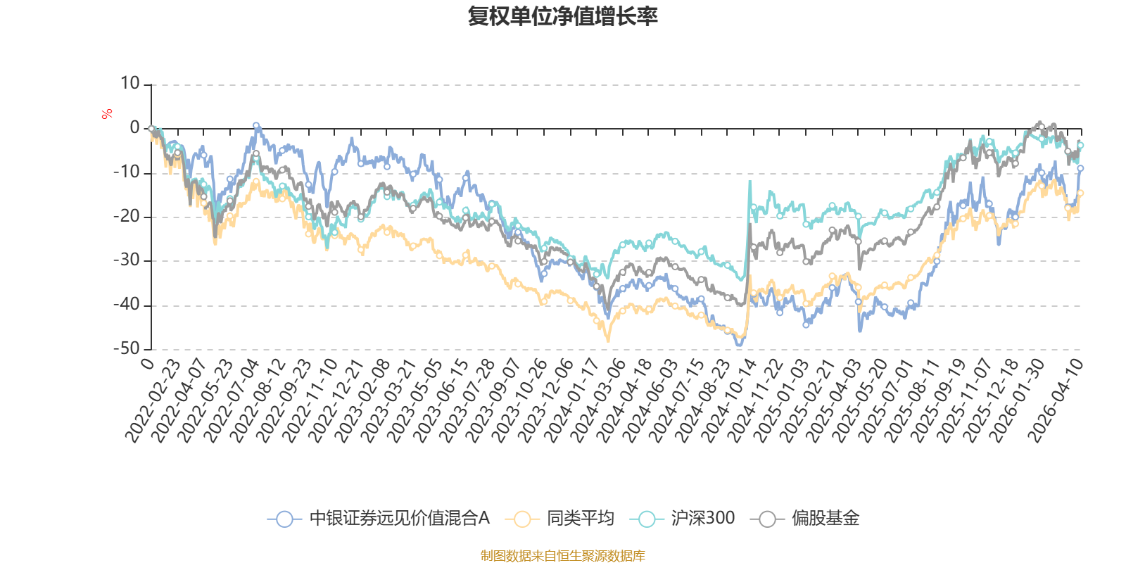 截至4月10日,中银证券远见价值混合A近三个月复权单位净值增长率为2.83%,位于同类可比基金216/689;近半年复权单位净值增长率为6.45%,位于同类可比基金302/689;近一年复权单位净值增长率为61.30%,位于同类可比基金117/685;近三年复权单位净值增长率为-0.98%,位于同类可比基金300/417。