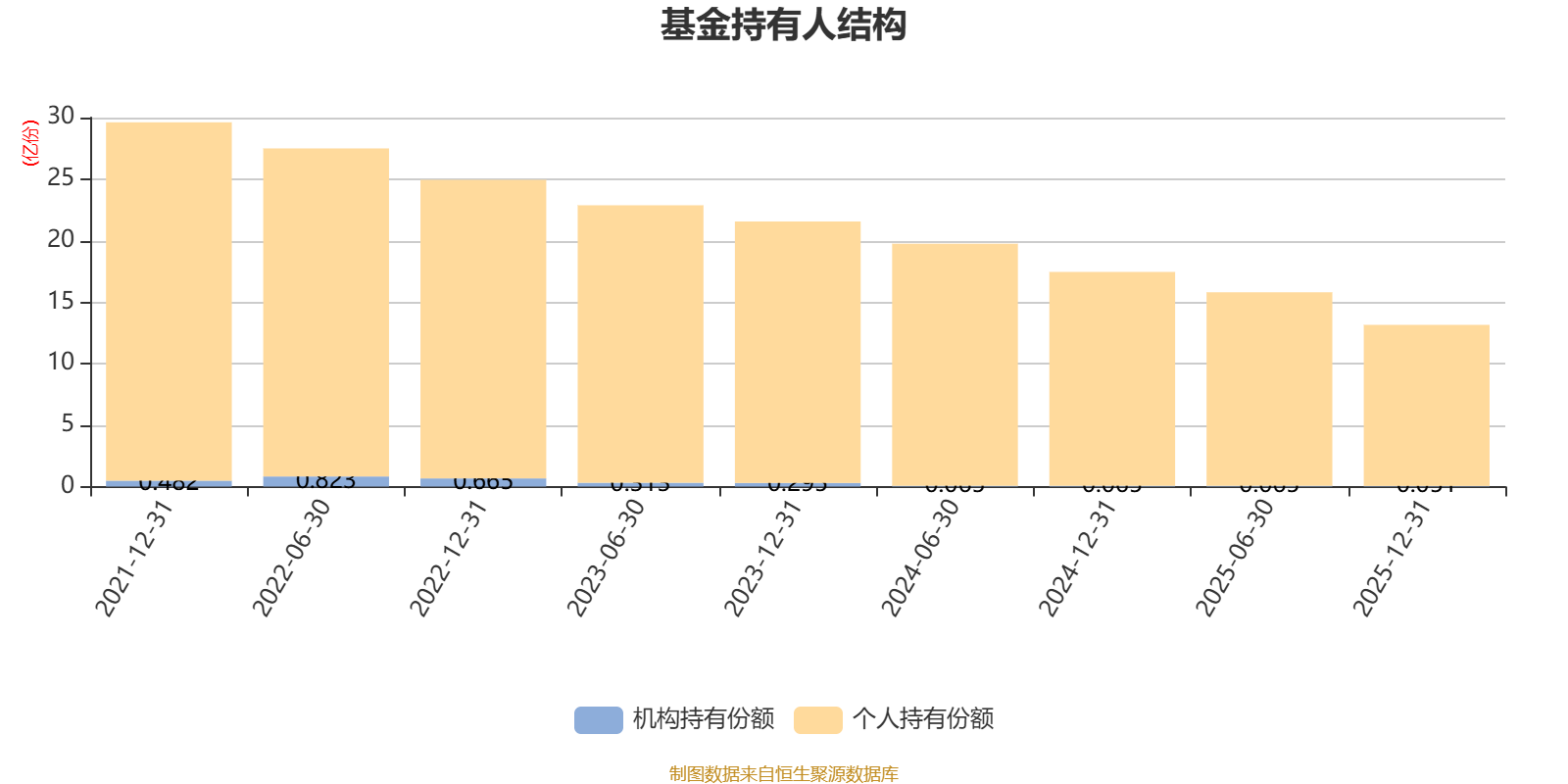 截至2025年12月31日,基金持有人共计2.2万户,合计持有13.15亿份。其中管理人员工持有383.85万份,占比0.29%,机构持有份额占比0.39%,个人投资者占比99.61%。
