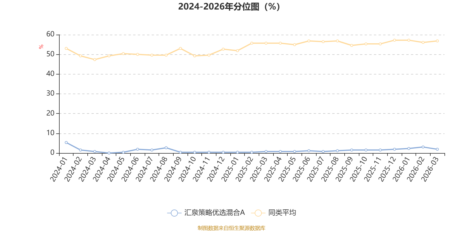 通过所选区间该基金净值增长率分位图,可以观察该基金与同类基金业绩比较情况。图为坐标原点到区间内某时点的净值增长率在同类基金中的分位数。
