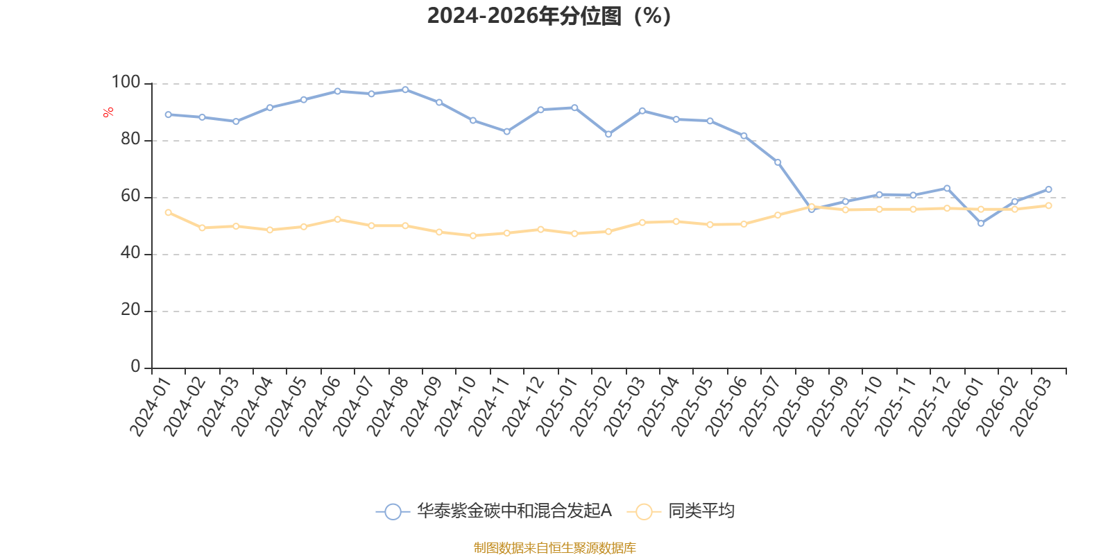 通过所选区间该基金净值增长率分位图,可以观察该基金与同类基金业绩比较情况。图为坐标原点到区间内某时点的净值增长率在同类基金中的分位数。