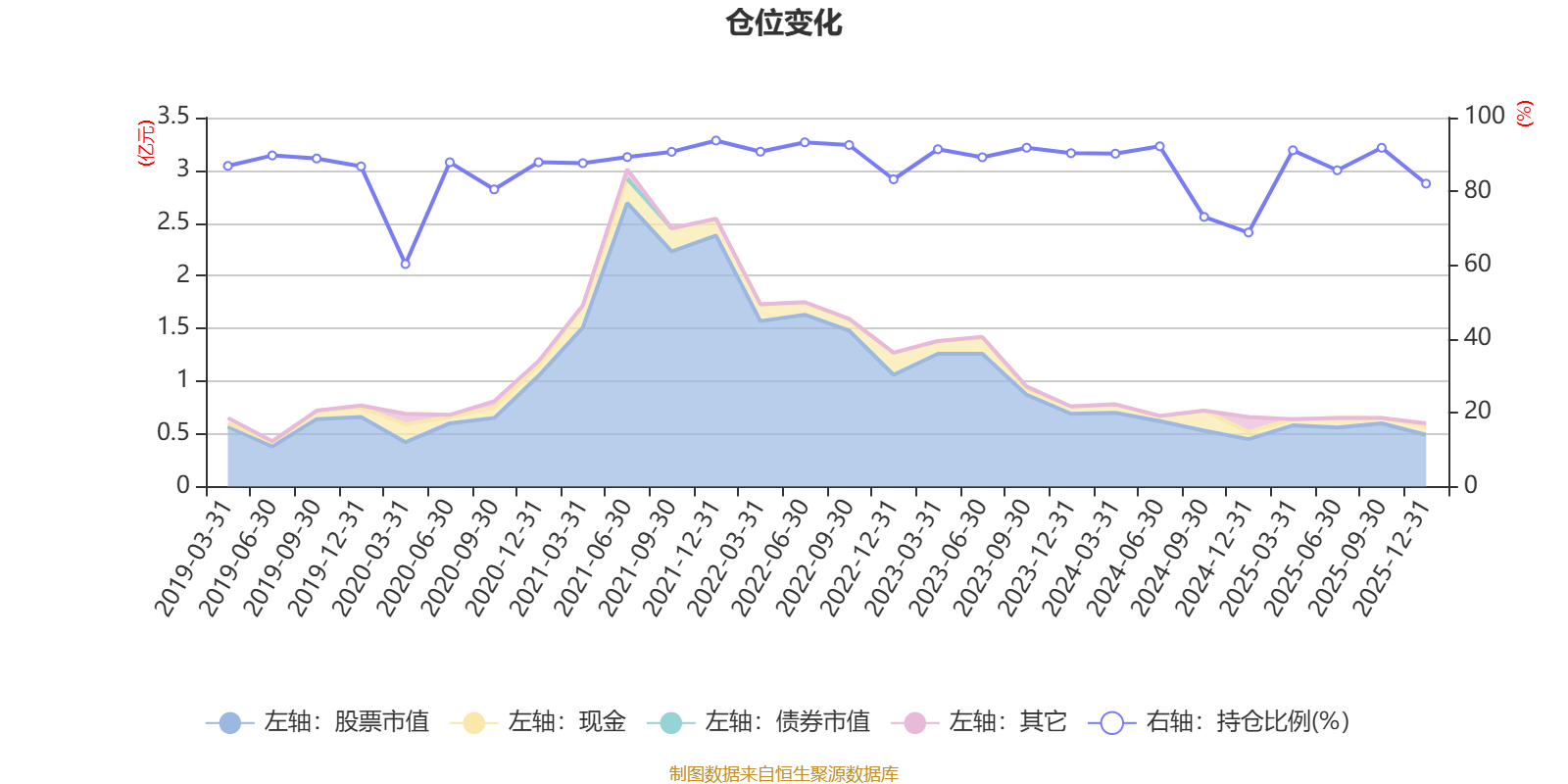 据定期报告数据统计,近三年平均股票仓位为86.5%,同类平均为72.57%。2021年末基金达到93.77%的最高仓位,2020年一季度末最低,为60.31%。