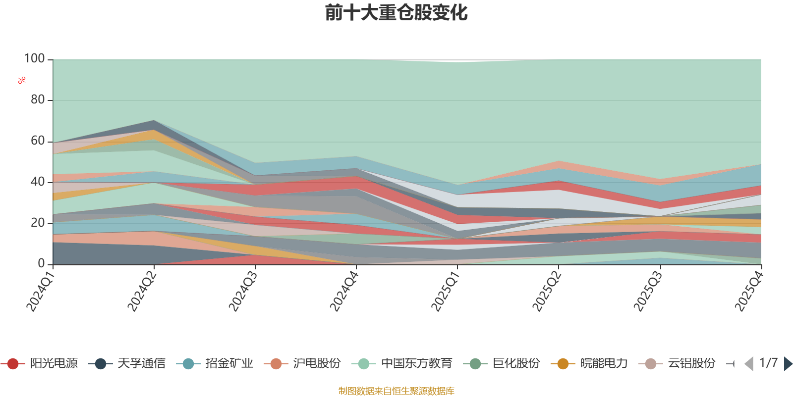 截至2025年末,基金十大重仓股分别是紫金矿业、中国宏桥、豪迈科技、大金重工、隆鑫通用、福耀玻璃、纽威股份、宇通客车、巨化股份、中金黄金。